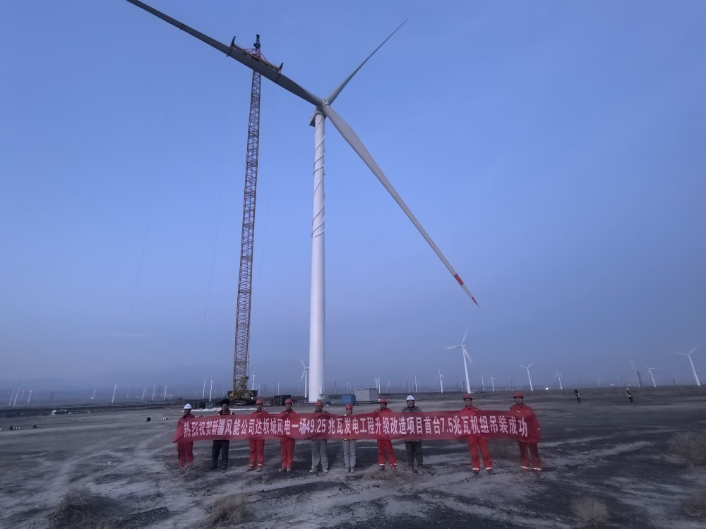 新疆風能有限責任公司達坂城苜蓿臺風電場首臺風機順利完成吊裝